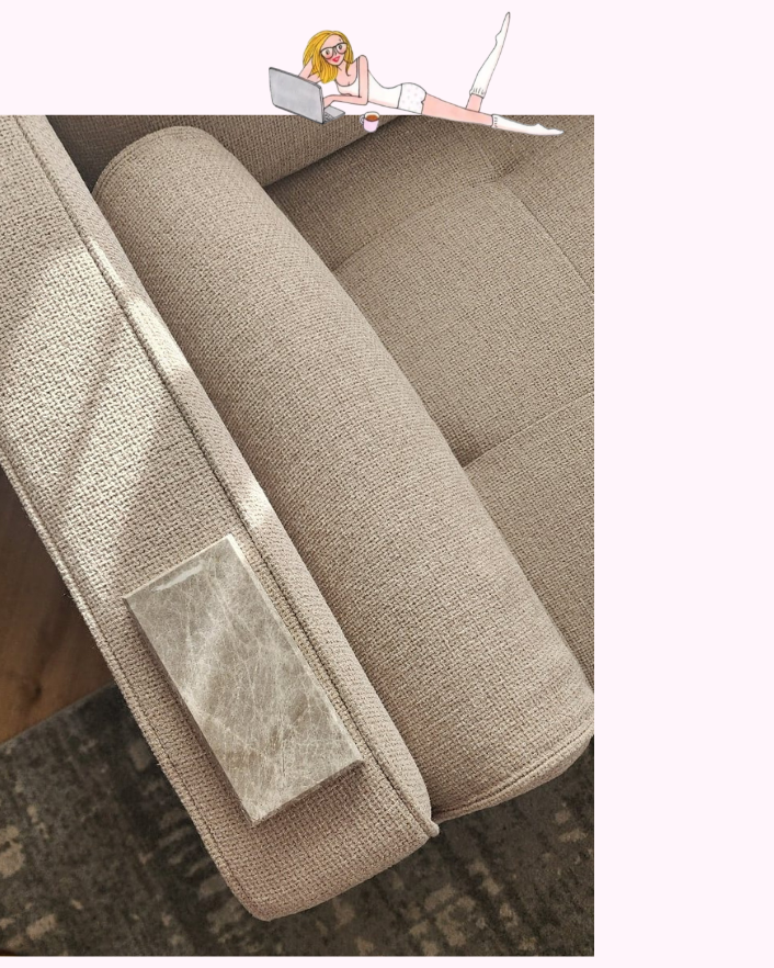 Thank you to @kyyahabdul for being the inspiration behind the most unique idea for coasters. In the mornings, I often sit on my couch with either warm water or coffee. I place my mug directly on the couch end, which is not the best idea when you have a fabric, cream coloured couch. The marble slab on the couch ends is chic and ever so practical.