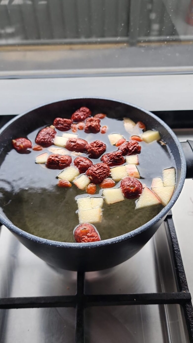 If you’re anything like me and are skincare obsessed, you have probably seen online the benefits of Jujube tea. The benefits for your skin and overall health are tremendous, I highly recommend you do a deep dive on TikTok and see the benefits for yourself. Every Sunday, I brew a fresh batch in my slow cooker / rice cooker, with ginger, cinnamon sticks, goji berries and sliced apple. I make around two liters and have a cup every morning.